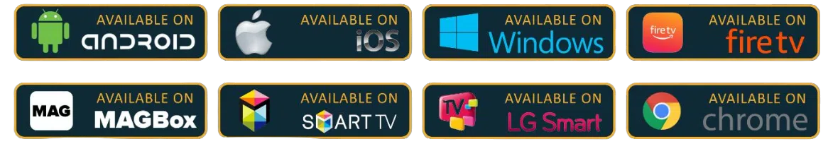 Fully compatible across a wide range of devices, including MAG, Android, Kodi, Enigma, IPTV Box, PCs, and Smart TVs.